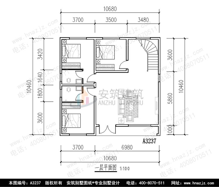 注:图纸为长沙安筑建筑科技有限公司设计,版权所有,受法律保护。图纸设计依照国家建筑行业标准设计,其结构受力安全执行建筑设计国标强制性标准,图纸价格为A3纸质档1份。