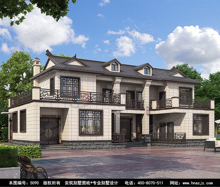 | 5090二层新中式带露台农村别墅设计图纸 | |