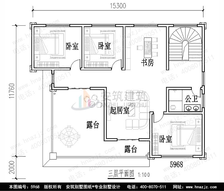 | 5968三层欧式风格带院子新农村别墅建房图纸15.3*11.7 | |
