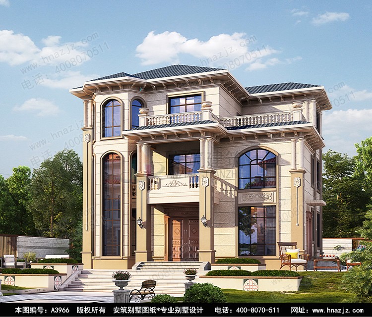 | 3966三层欧式风格客厅挑空新农村别墅建房图纸 | |